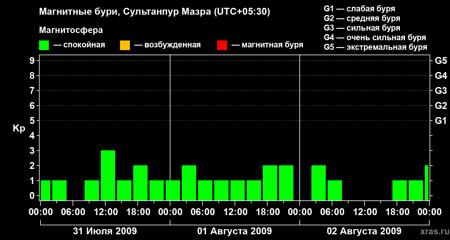 Магнитные бури в Сультанпур Мазре 2 августа 2009 года