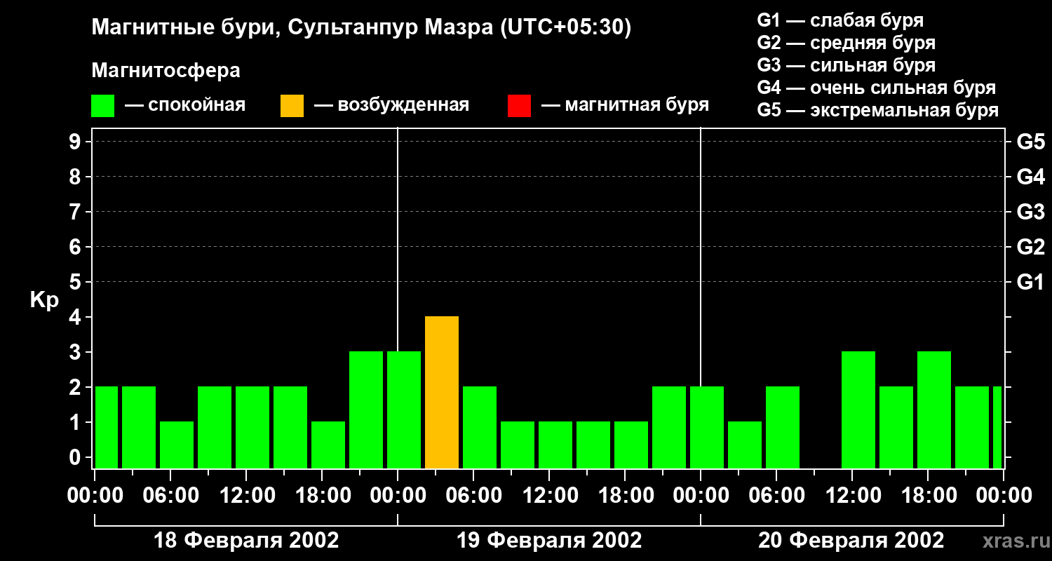 Магнитные бури в Сультанпур Мазре 20 февраля 2002 года