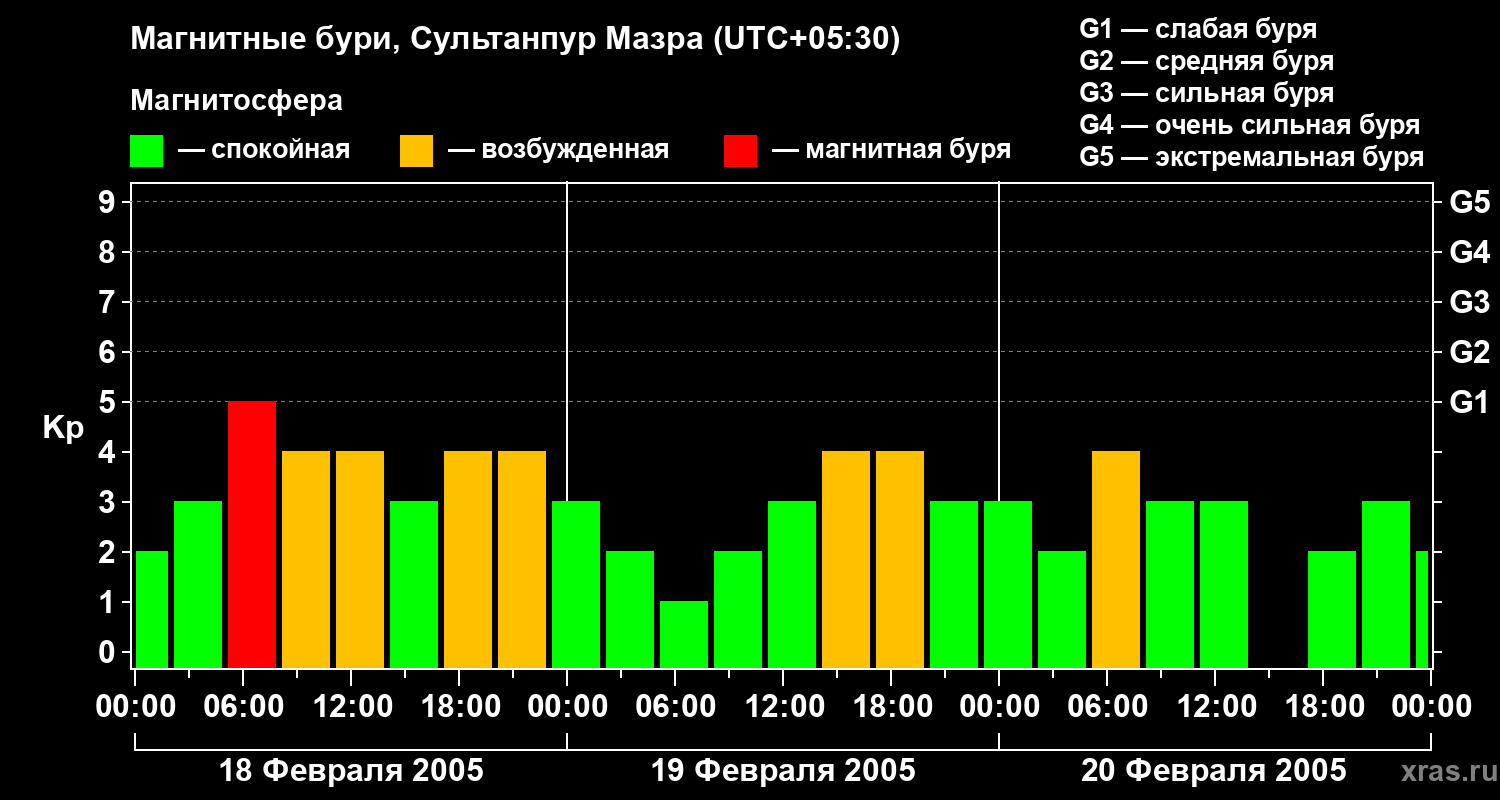 Магнитные бури в Сультанпур Мазре — 20 февраля 2005 года