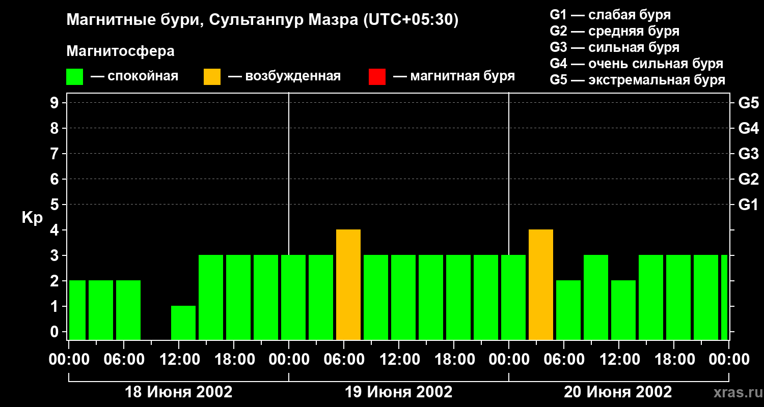 Магнитные бури в Сультанпур Мазре 20 июня 2002 года