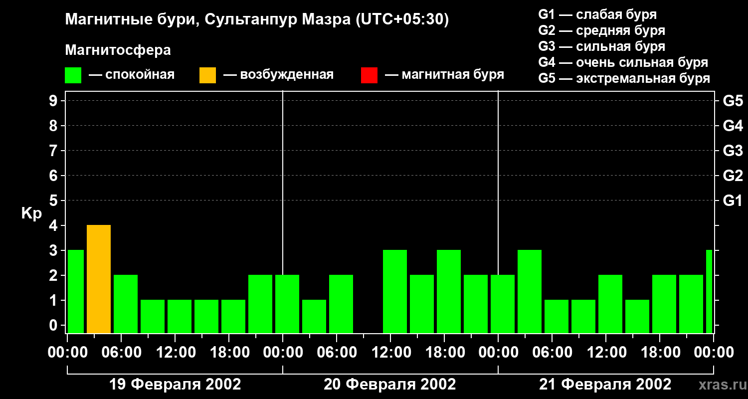 Магнитные бури в Сультанпур Мазре 21 февраля 2002 года