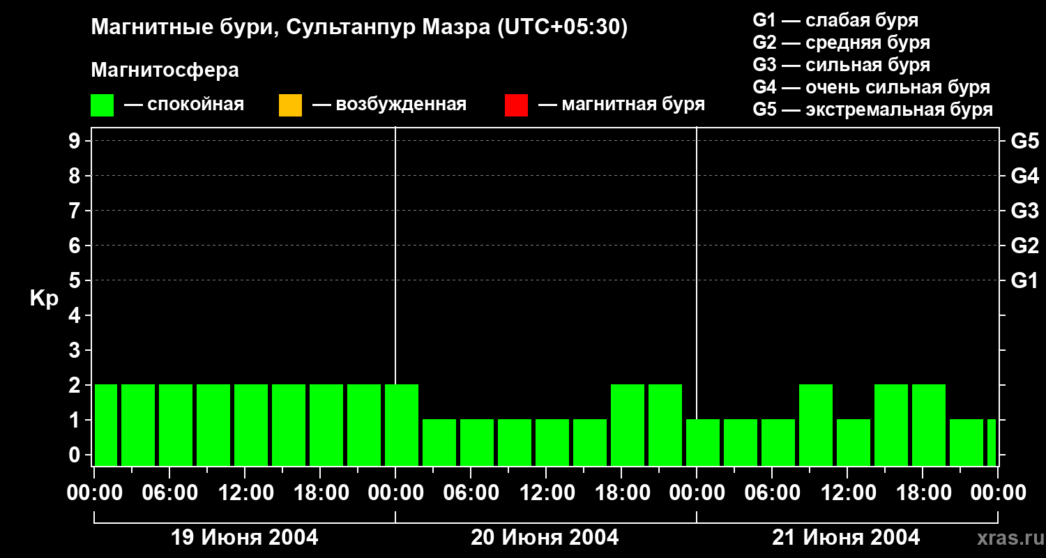 Магнитные бури в Сультанпур Мазре 21 июня 2004 года