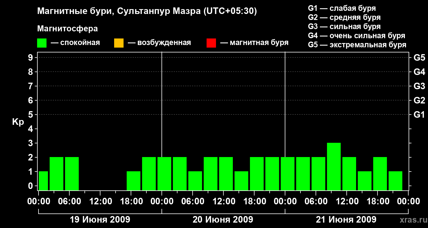 Магнитные бури в Сультанпур Мазре 21 июня 2009 года