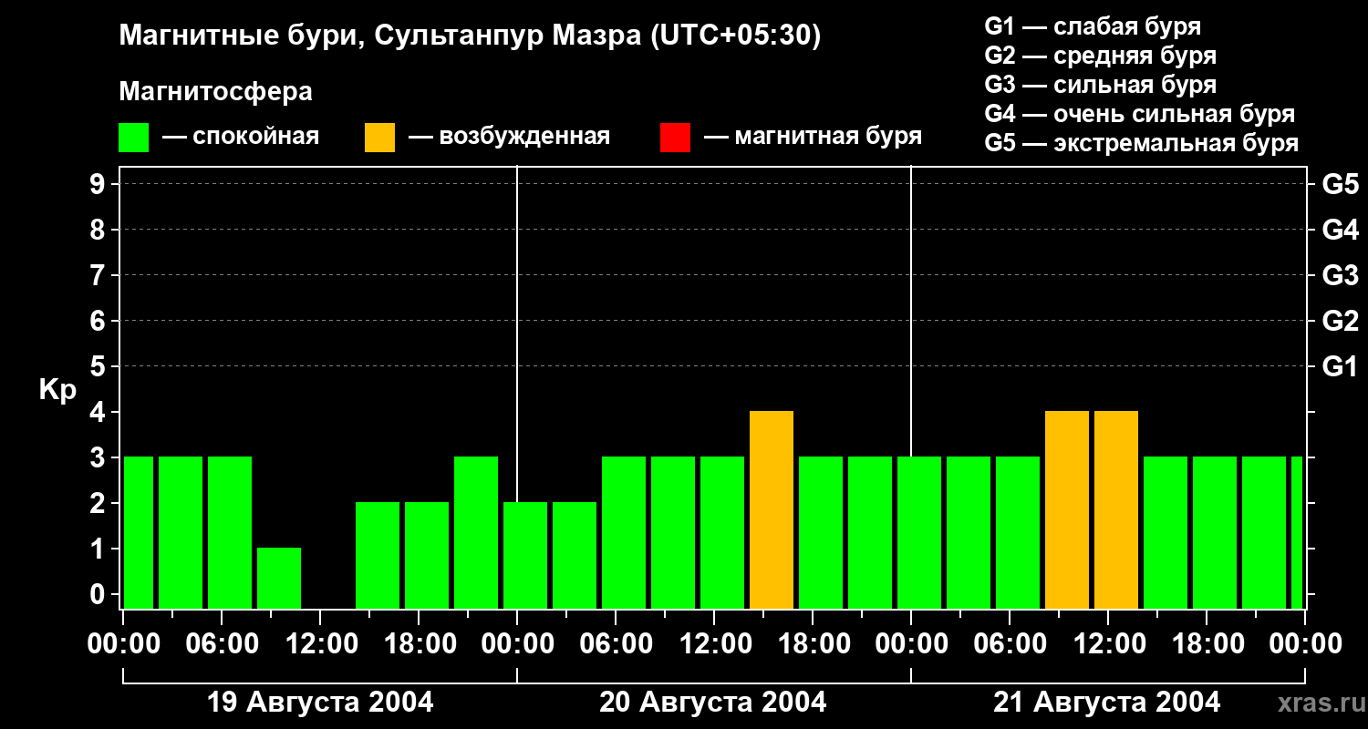 Магнитные бури в Сультанпур Мазре 21 августа 2004 года