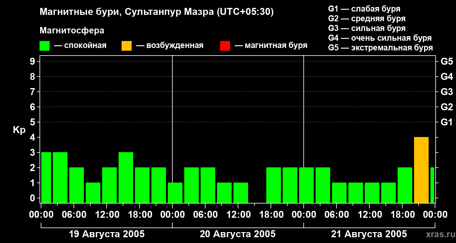 Магнитные бури в Сультанпур Мазре 21 августа 2005 года