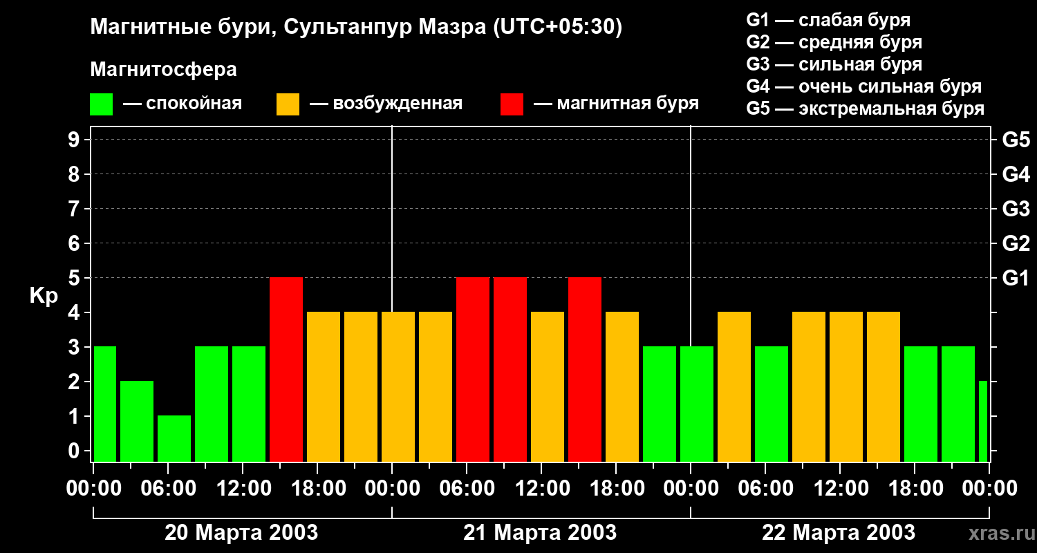 Магнитные бури в Сультанпур Мазре 22 марта 2003 года