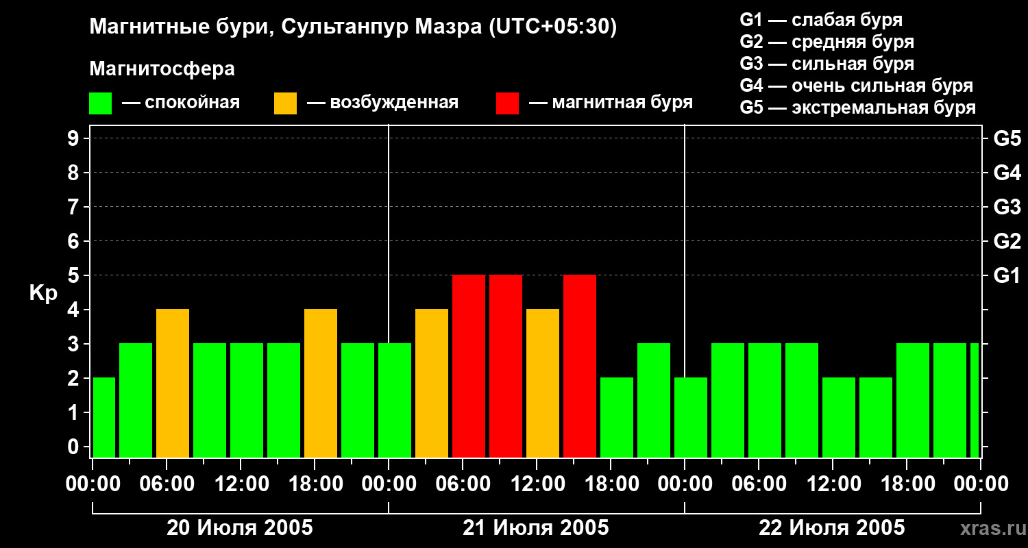 Магнитные бури в Сультанпур Мазре — 22 июля 2005 года