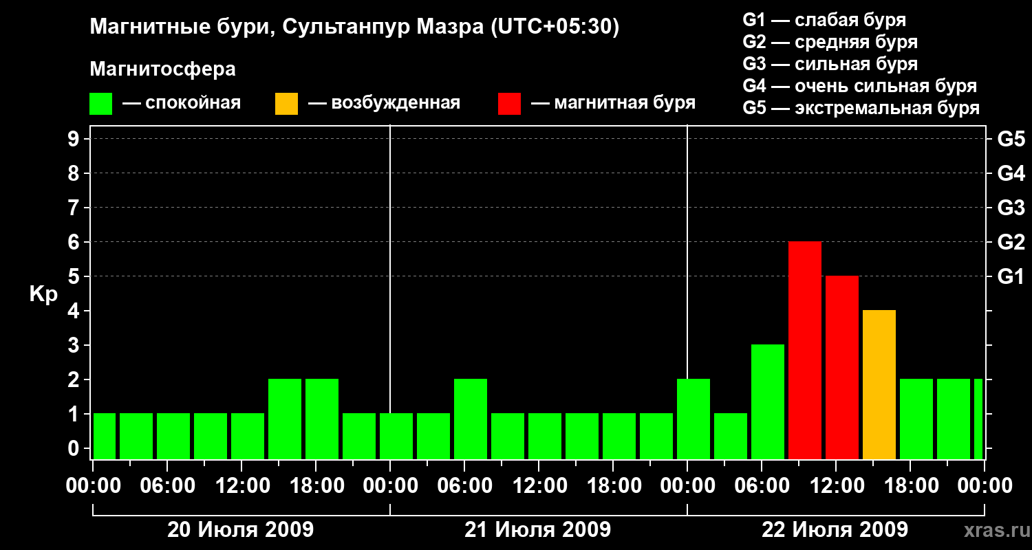 Магнитные бури в Сультанпур Мазре — 22 июля 2009 года