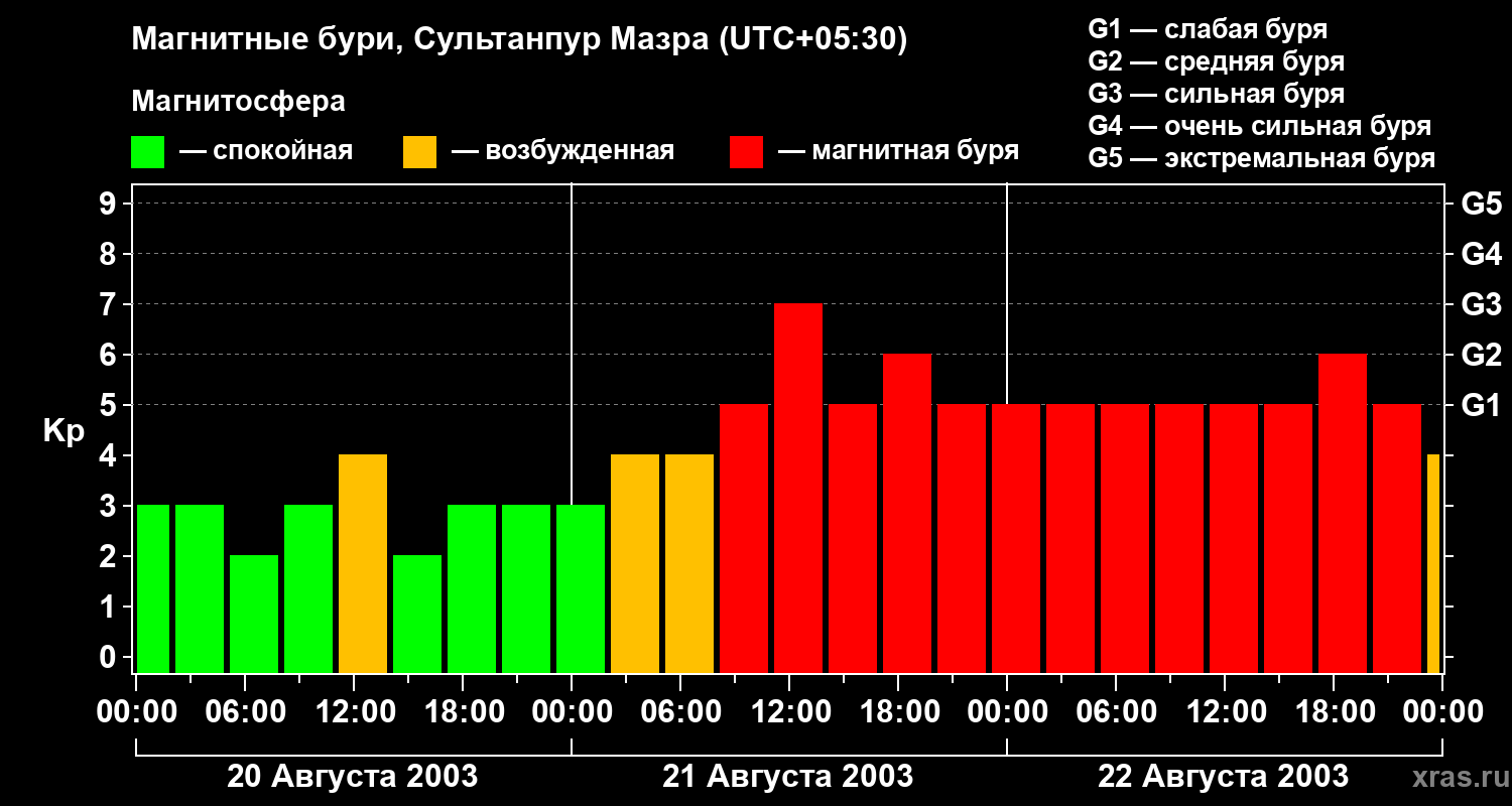 Магнитные бури в Сультанпур Мазре 22 августа 2003 года
