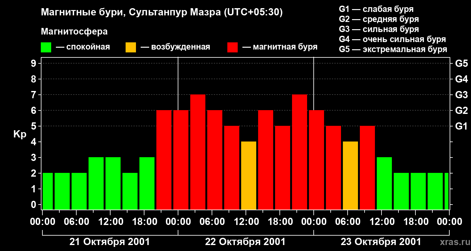 Магнитные бури в Сультанпур Мазре 23 октября 2001 года