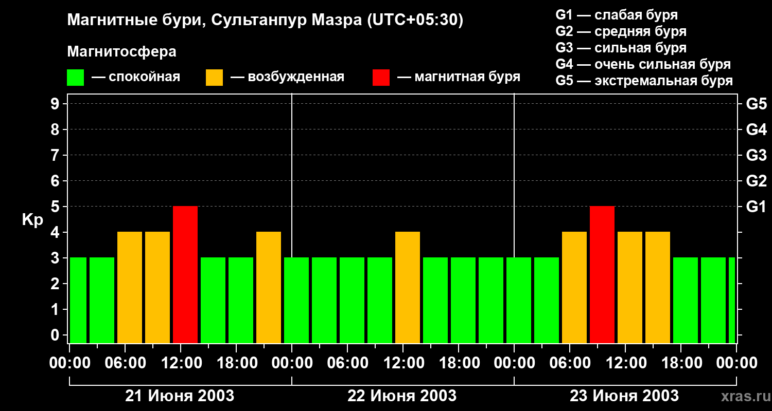 Магнитные бури в Сультанпур Мазре 23 июня 2003 года