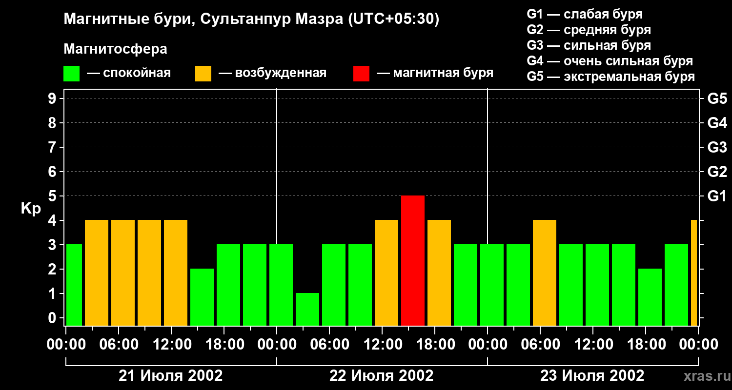 Магнитные бури в Сультанпур Мазре 23 июля 2002 года