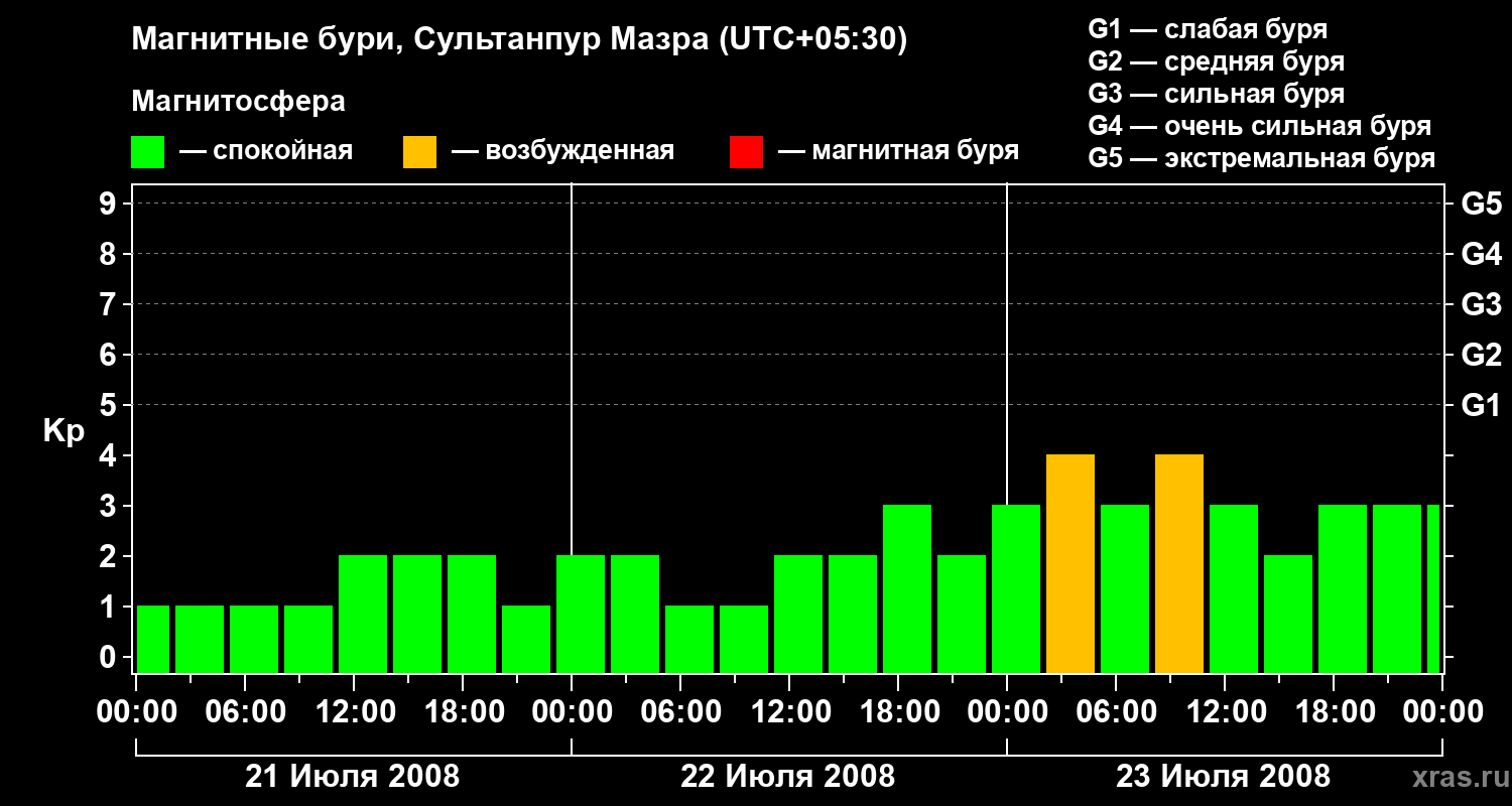 Магнитные бури в Сультанпур Мазре — 23 июля 2008 года