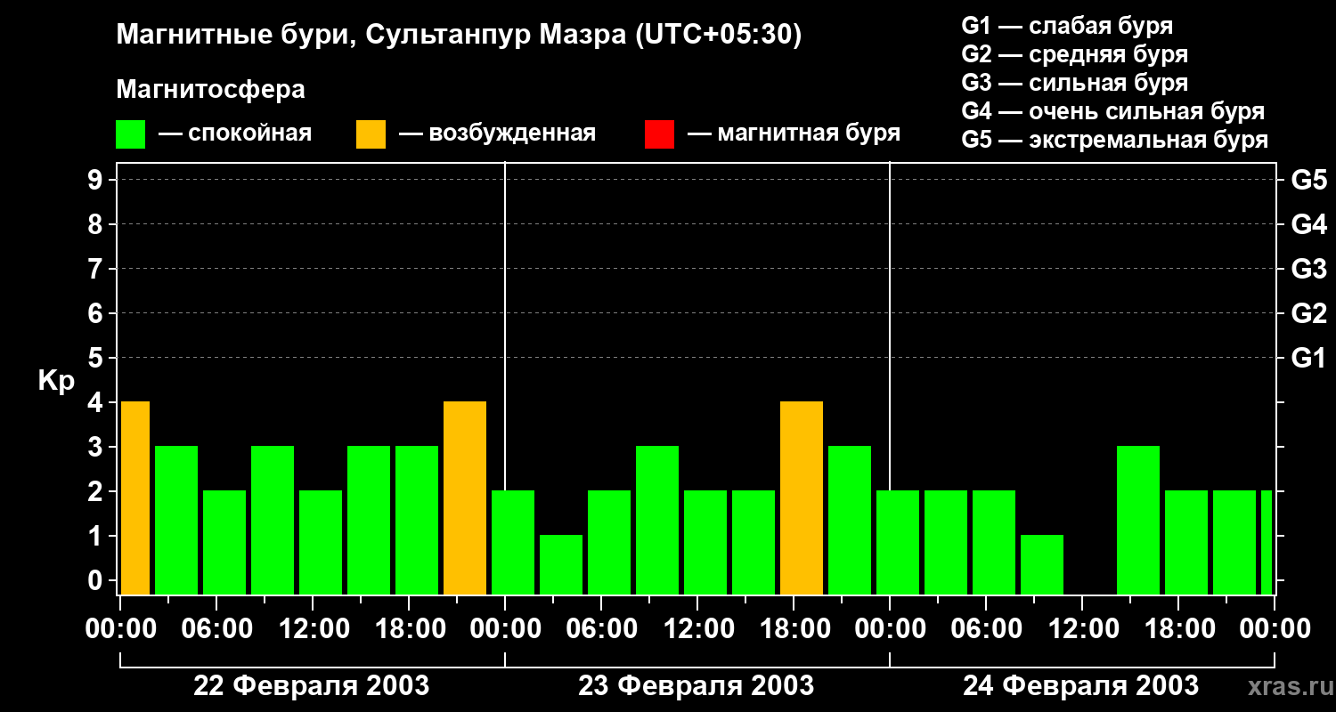 Магнитные бури в Сультанпур Мазре 24 февраля 2003 года