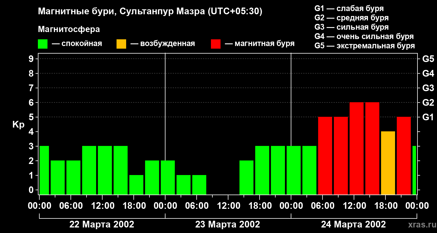 Магнитные бури в Сультанпур Мазре 24 марта 2002 года