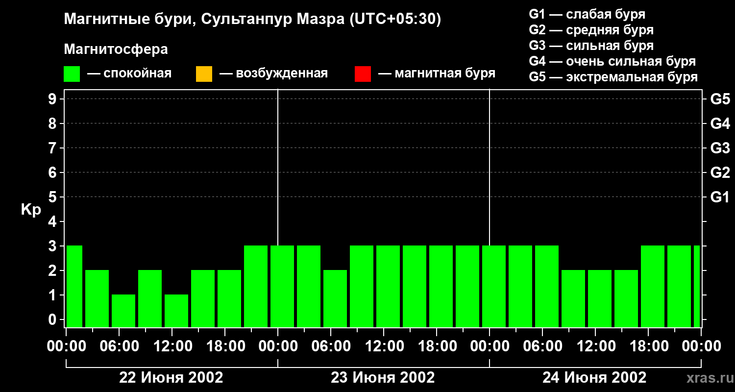 Магнитные бури в Сультанпур Мазре 24 июня 2002 года