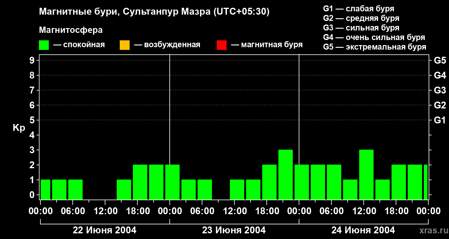 Магнитные бури в Сультанпур Мазре 24 июня 2004 года