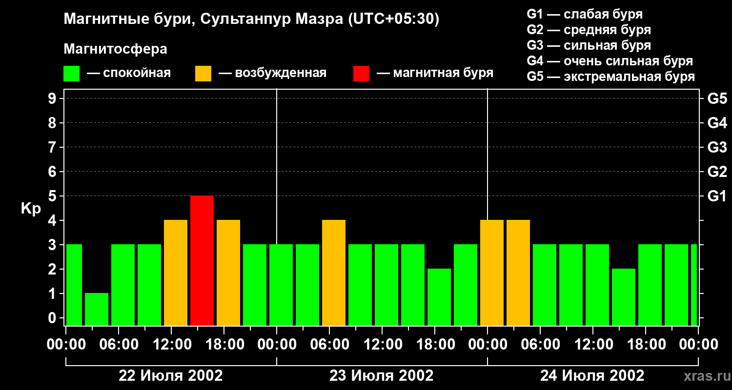 Магнитные бури в Сультанпур Мазре — 24 июля 2002 года