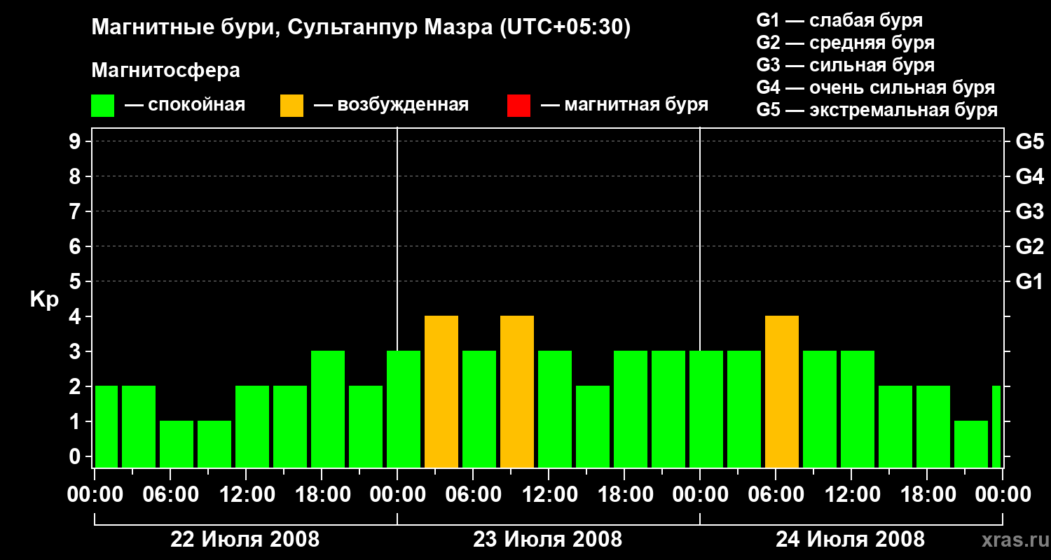 Магнитные бури в Сультанпур Мазре 24 июля 2008 года