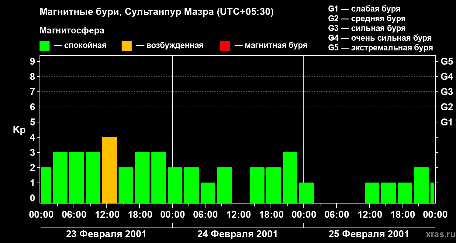 Магнитные бури в Сультанпур Мазре 25 февраля 2001 года