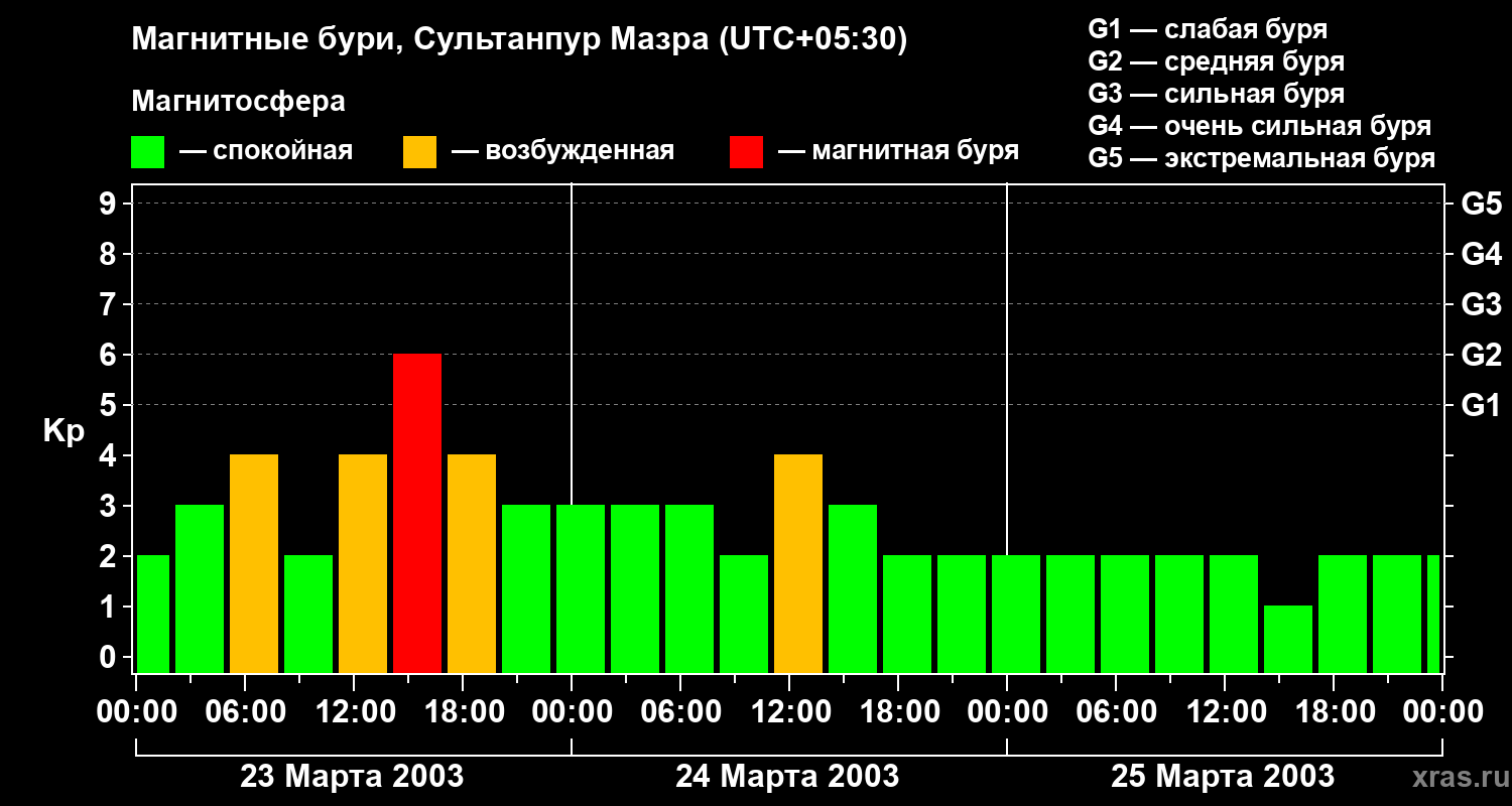 Магнитные бури в Сультанпур Мазре 25 марта 2003 года