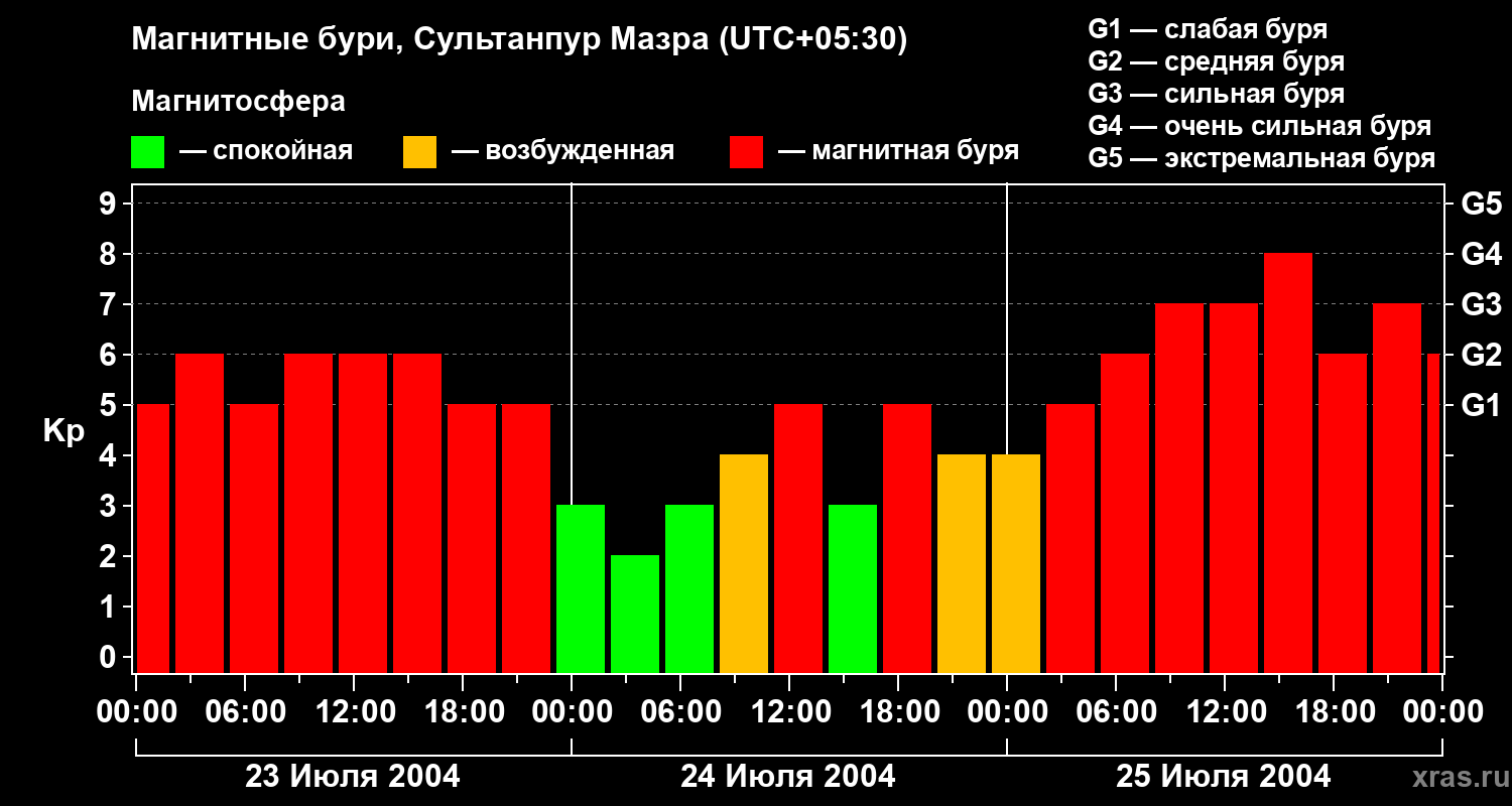 Магнитные бури в Сультанпур Мазре 25 июля 2004 года