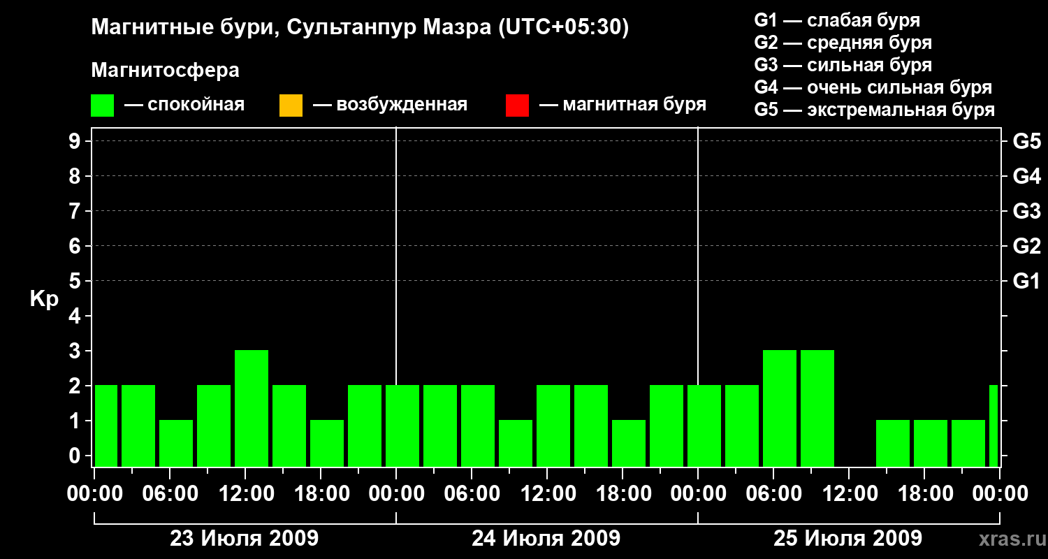 Магнитные бури в Сультанпур Мазре — 25 июля 2009 года