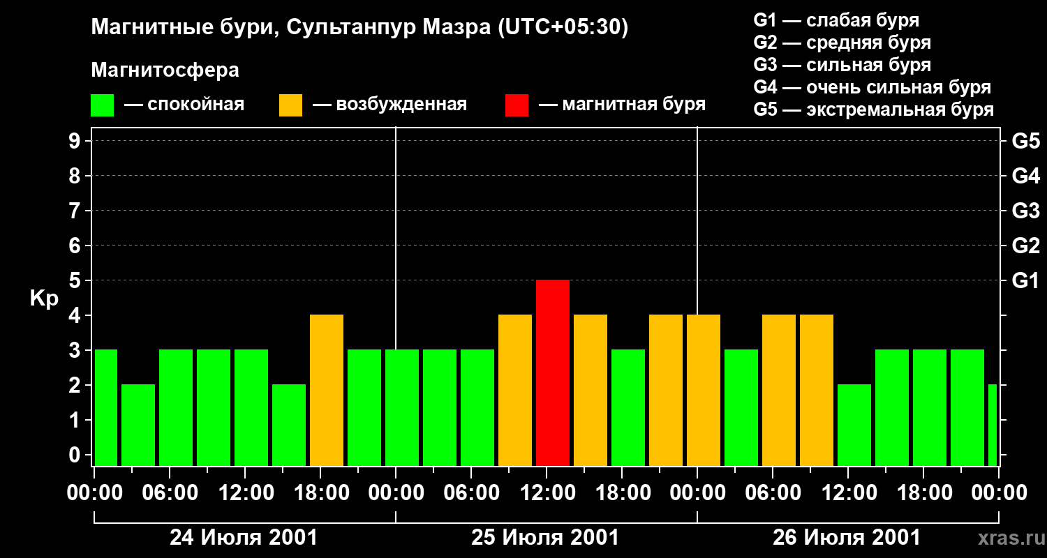 Магнитные бури в Сультанпур Мазре 26 июля 2001 года