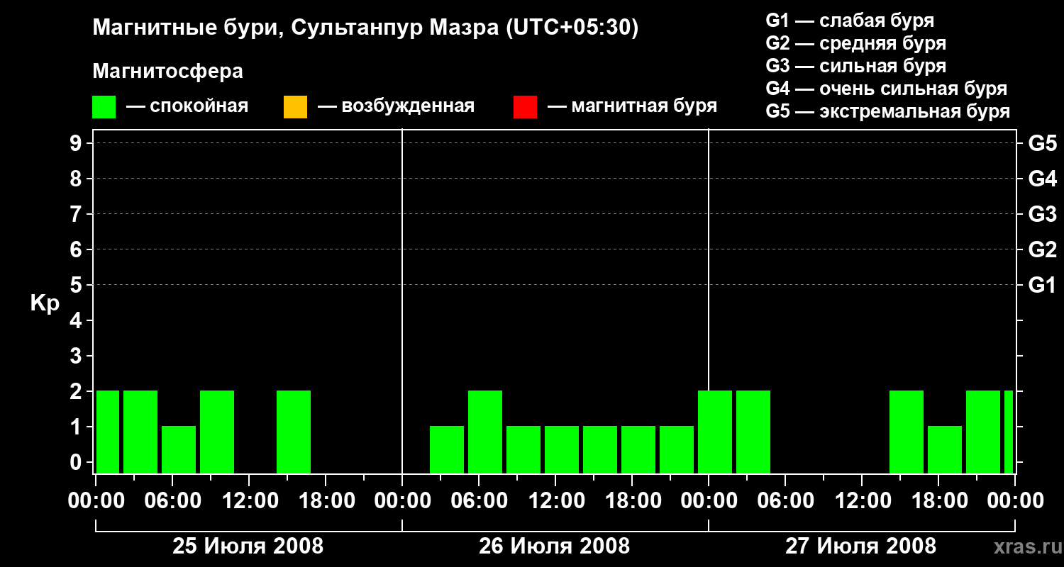 Магнитные бури в Сультанпур Мазре — 27 июля 2008 года