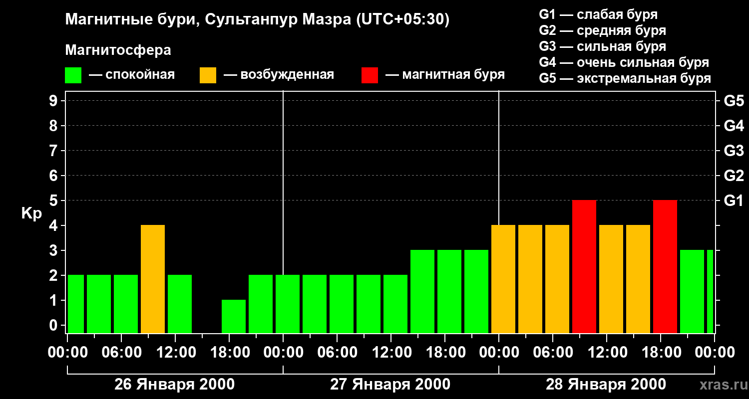 Магнитные бури в Сультанпур Мазре 28 января 2000 года