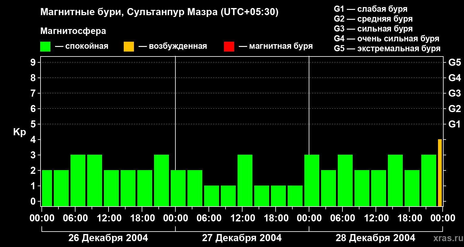 Магнитные бури в Сультанпур Мазре 28 декабря 2004 года