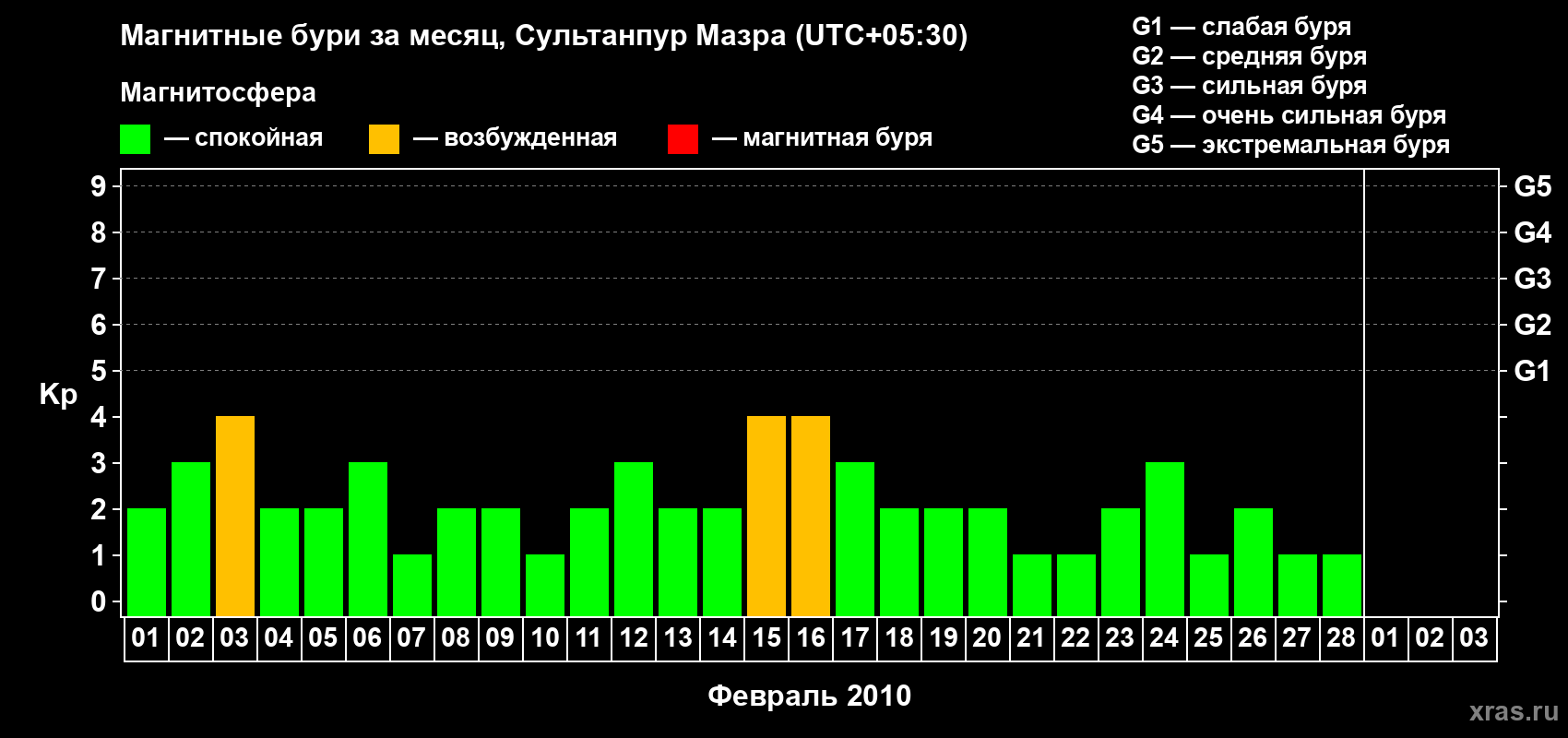Магнитные бури в Сультанпур Мазре в феврале 2010 года