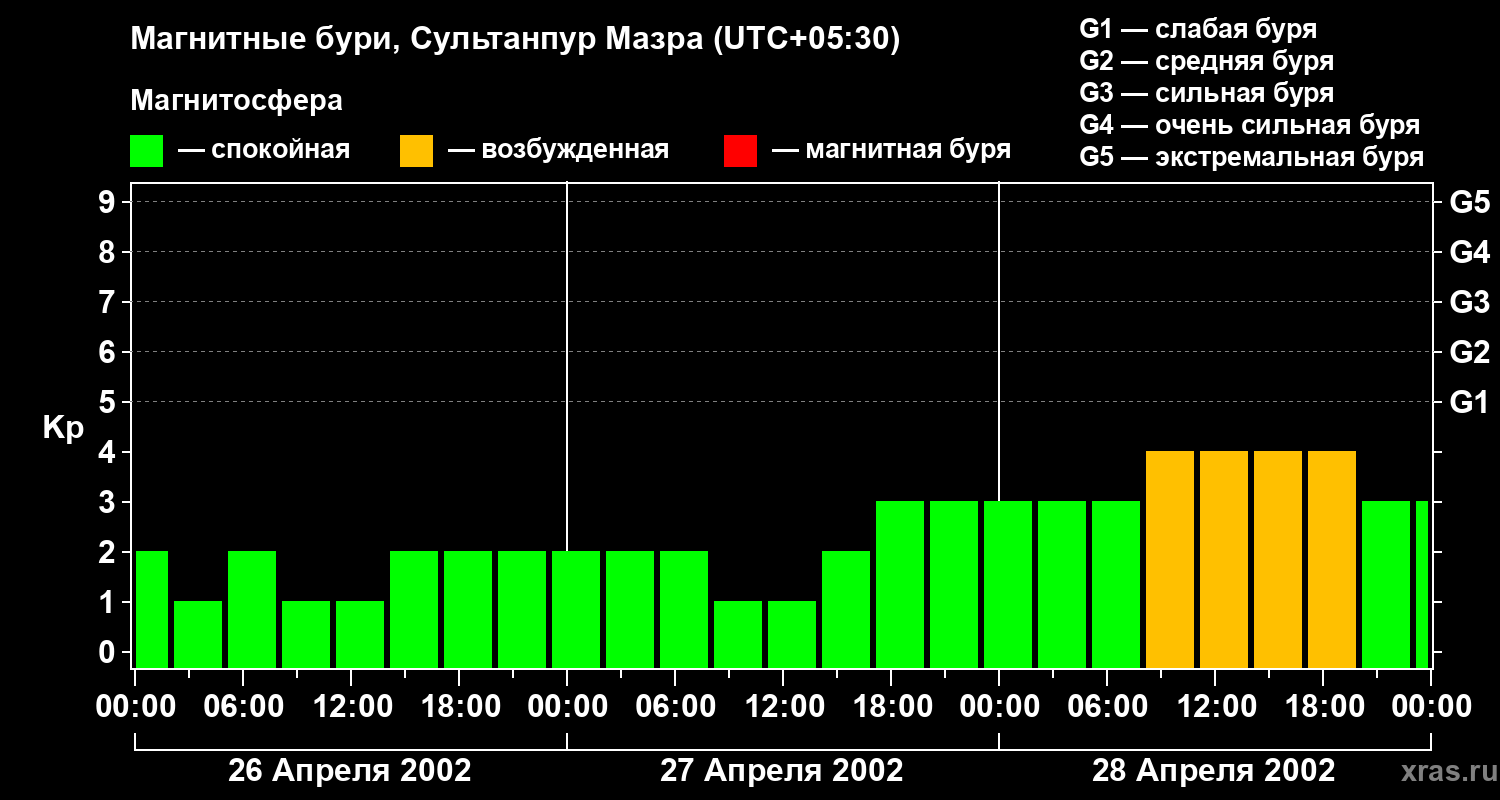 Магнитные бури в Сультанпур Мазре — 28 апреля 2002 года