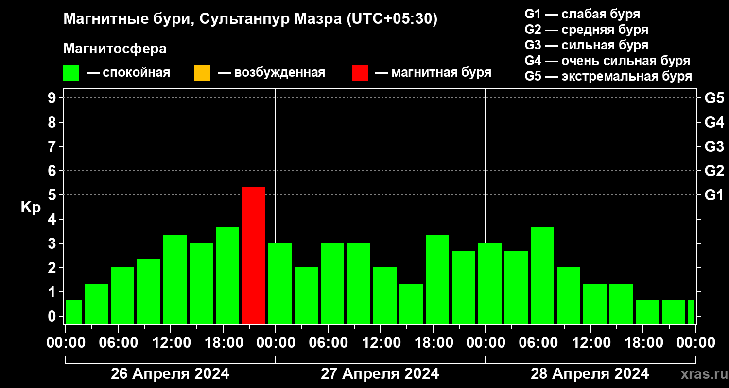 Магнитные бури в Сультанпур Мазре 28 апреля 2024 года