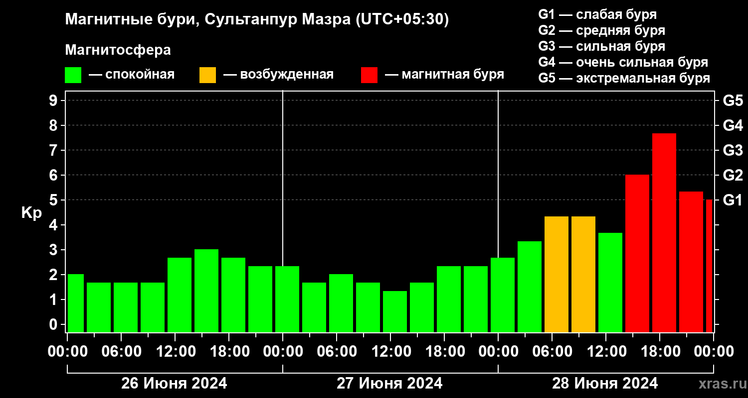 Магнитные бури в Сультанпур Мазре — 28 июня 2024 года