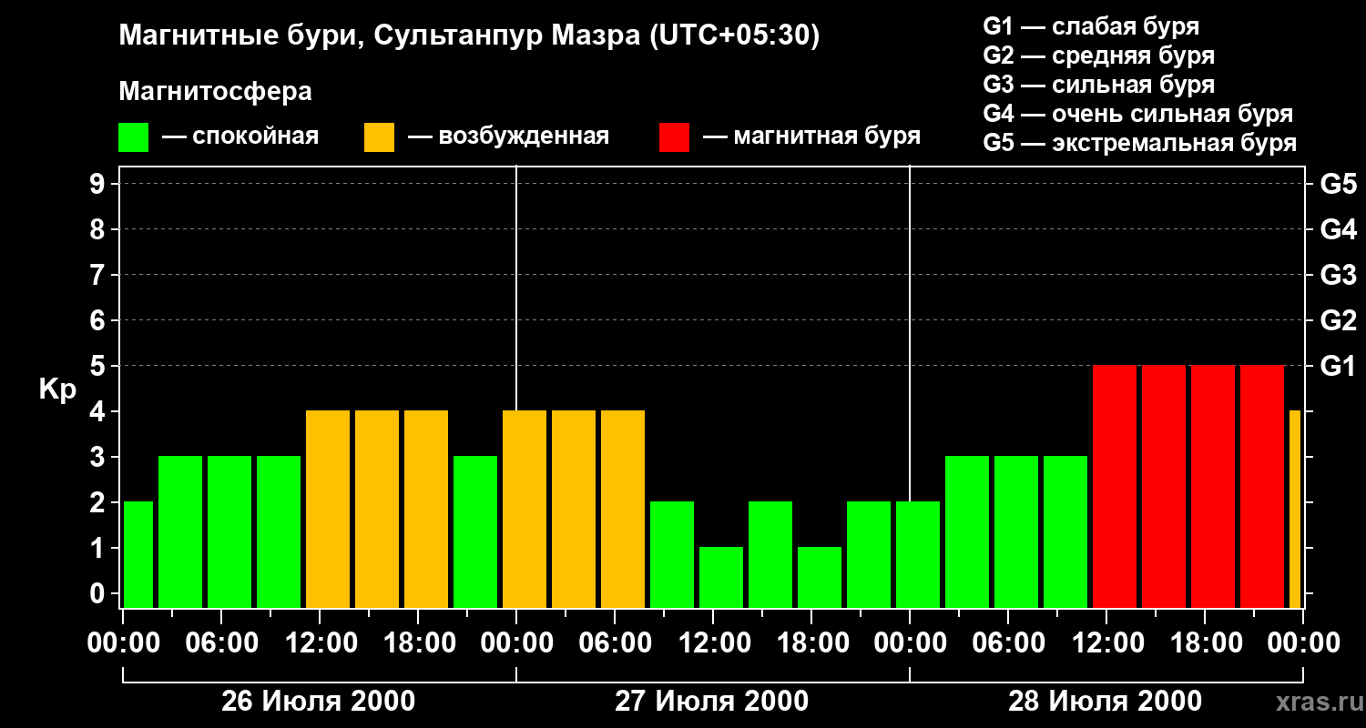 Магнитные бури в Сультанпур Мазре — 28 июля 2000 года