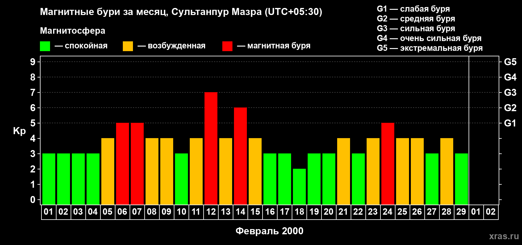 Магнитные бури в Сультанпур Мазре 29 февраля 2000 года