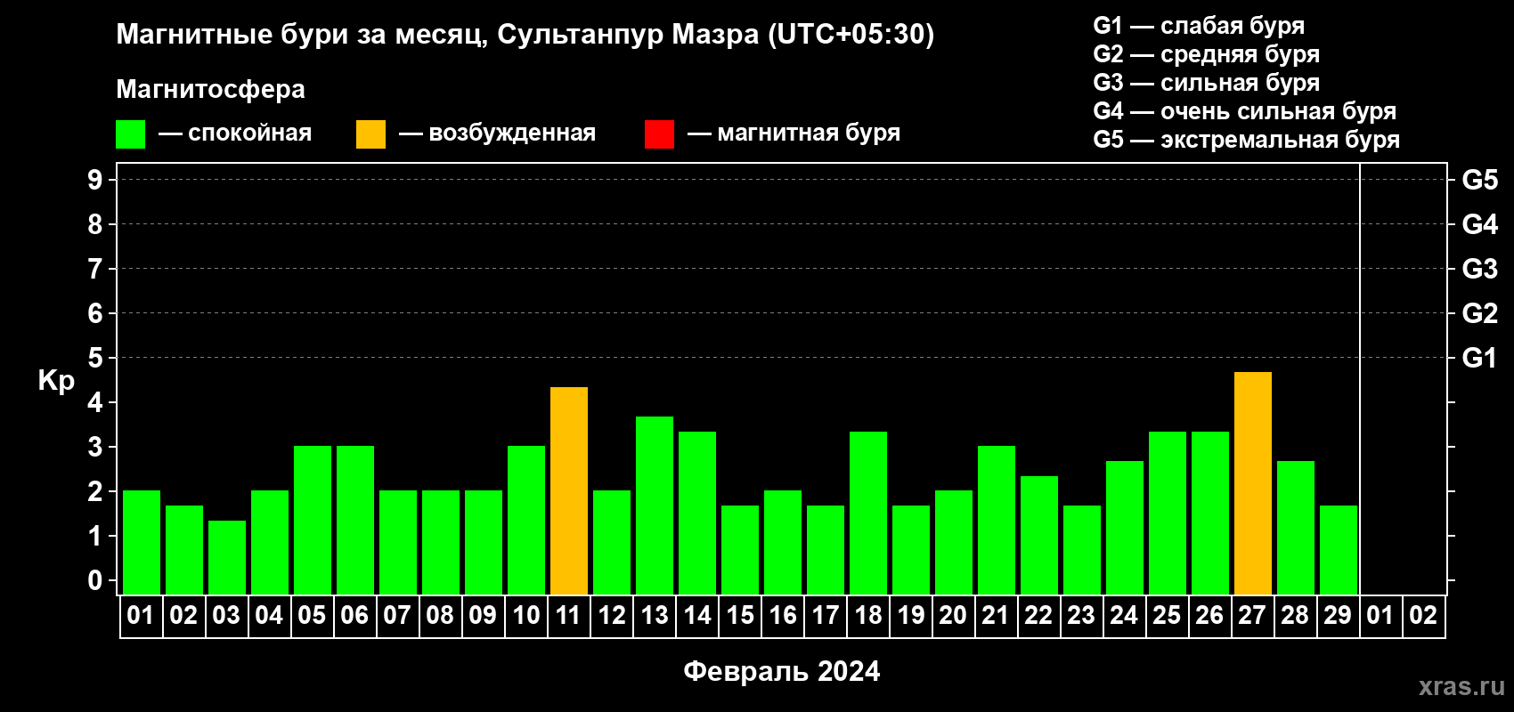 Магнитные бури в Сультанпур Мазре — 29 февраля 2024 года
