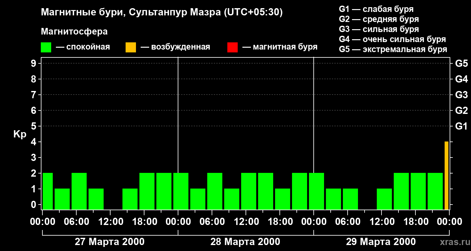 Магнитные бури в Сультанпур Мазре 29 марта 2000 года