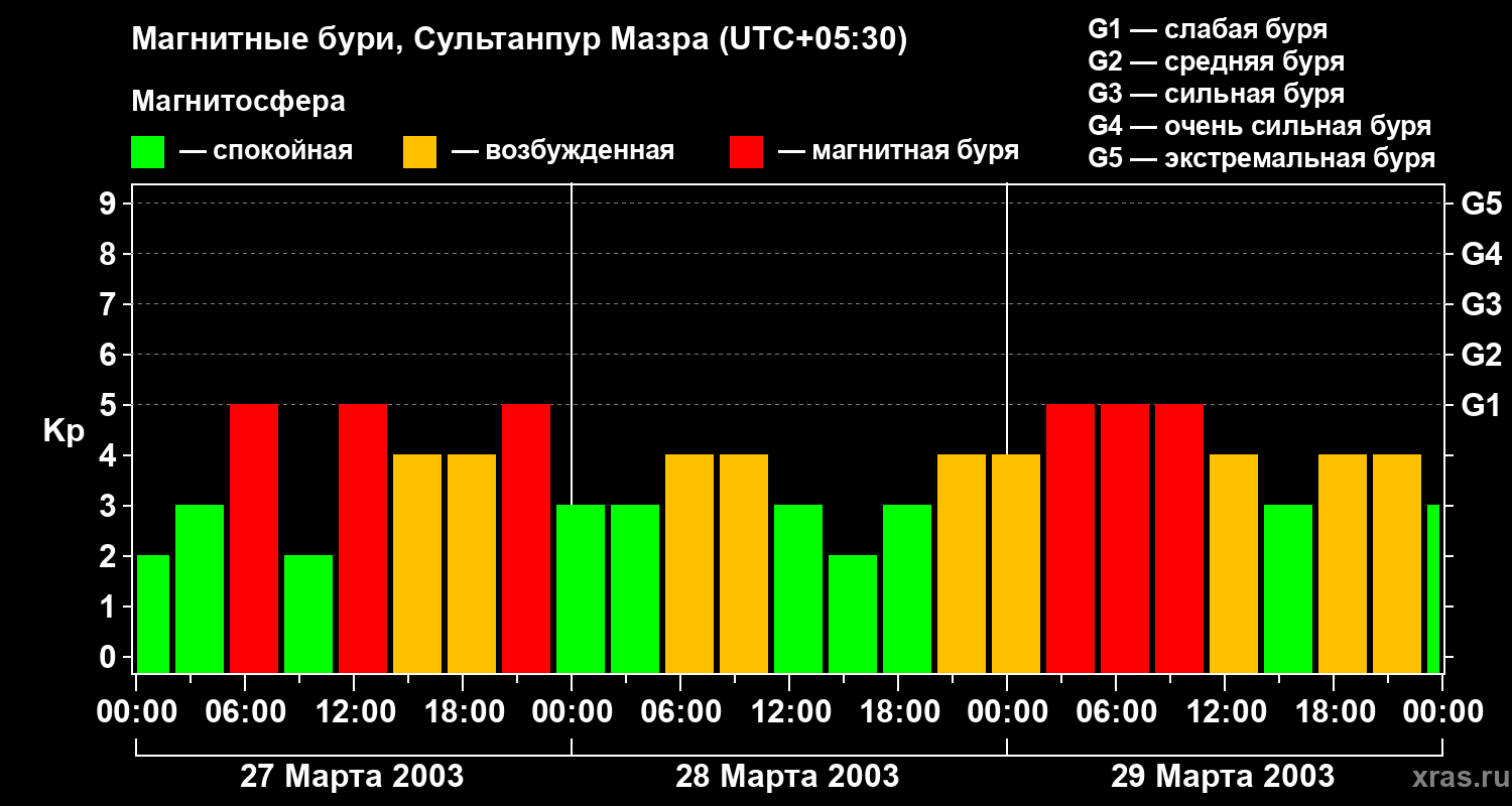 Магнитные бури в Сультанпур Мазре 29 марта 2003 года