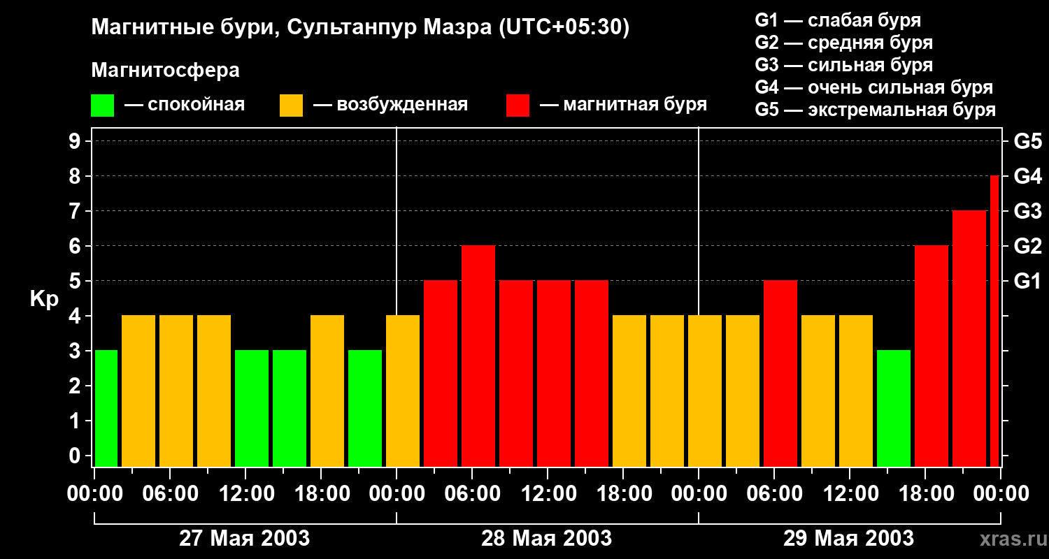 Магнитные бури в Сультанпур Мазре 29 мая 2003 года