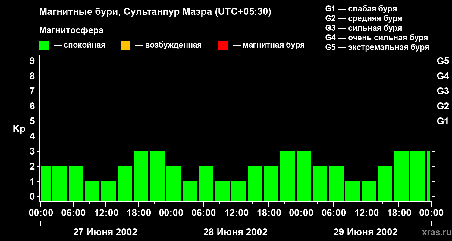 Магнитные бури в Сультанпур Мазре 29 июня 2002 года