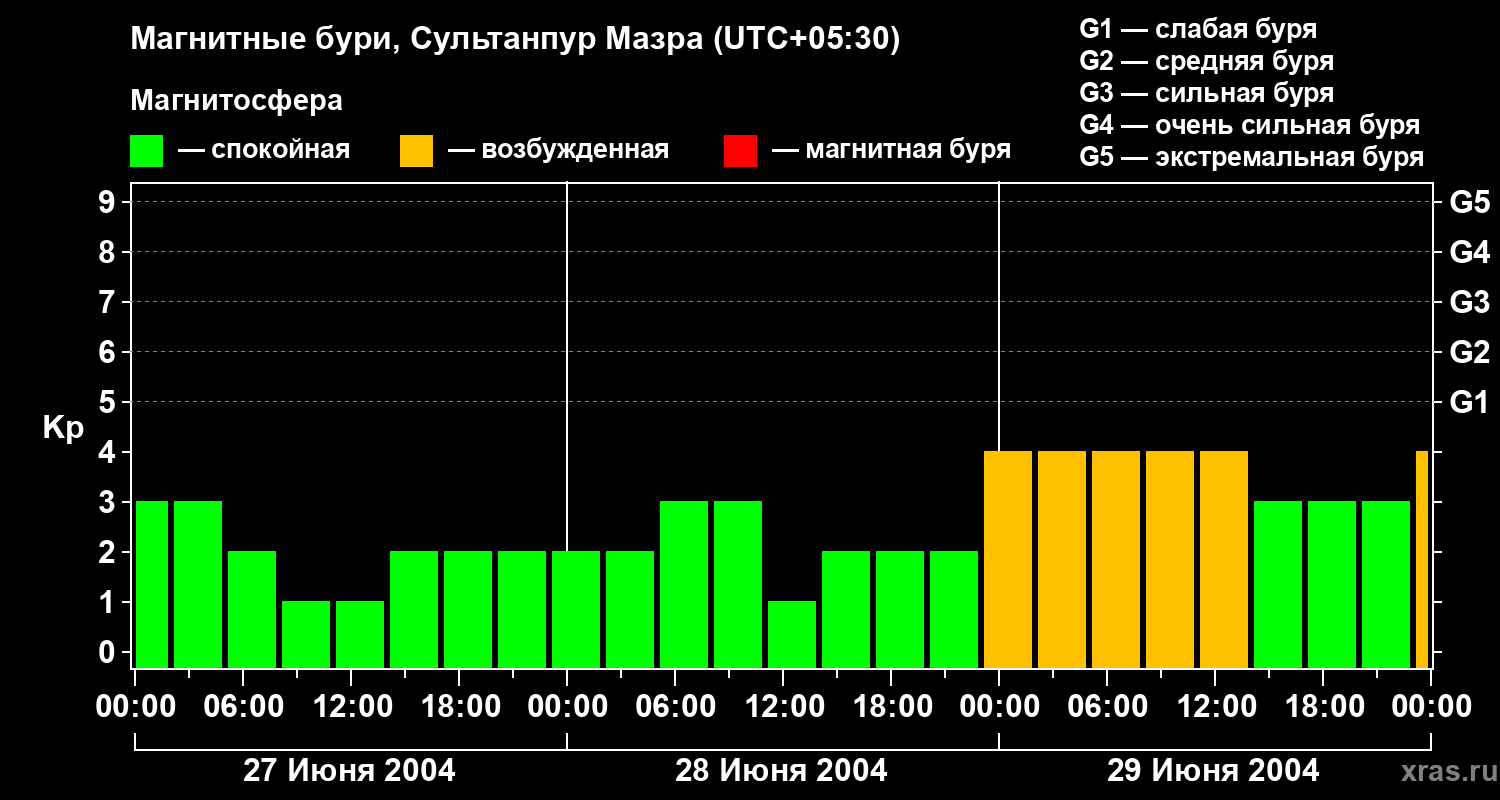 Магнитные бури в Сультанпур Мазре 29 июня 2004 года