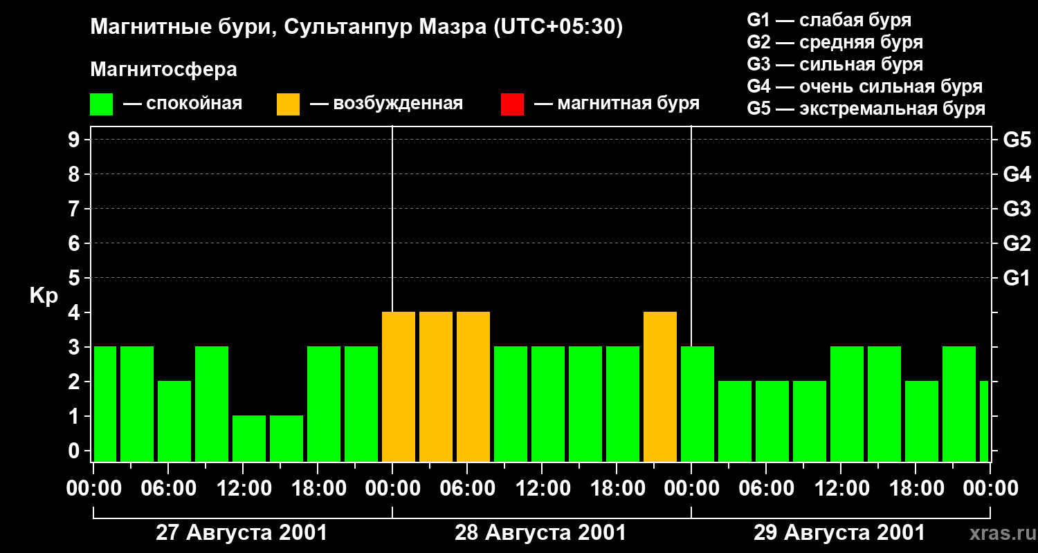 Магнитные бури в Сультанпур Мазре 29 августа 2001 года