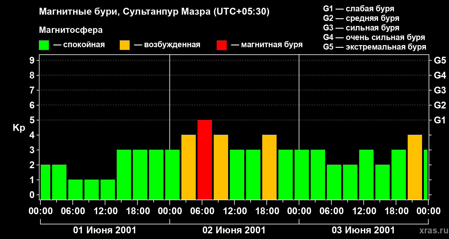 Магнитные бури в Сультанпур Мазре 3 июня 2001 года