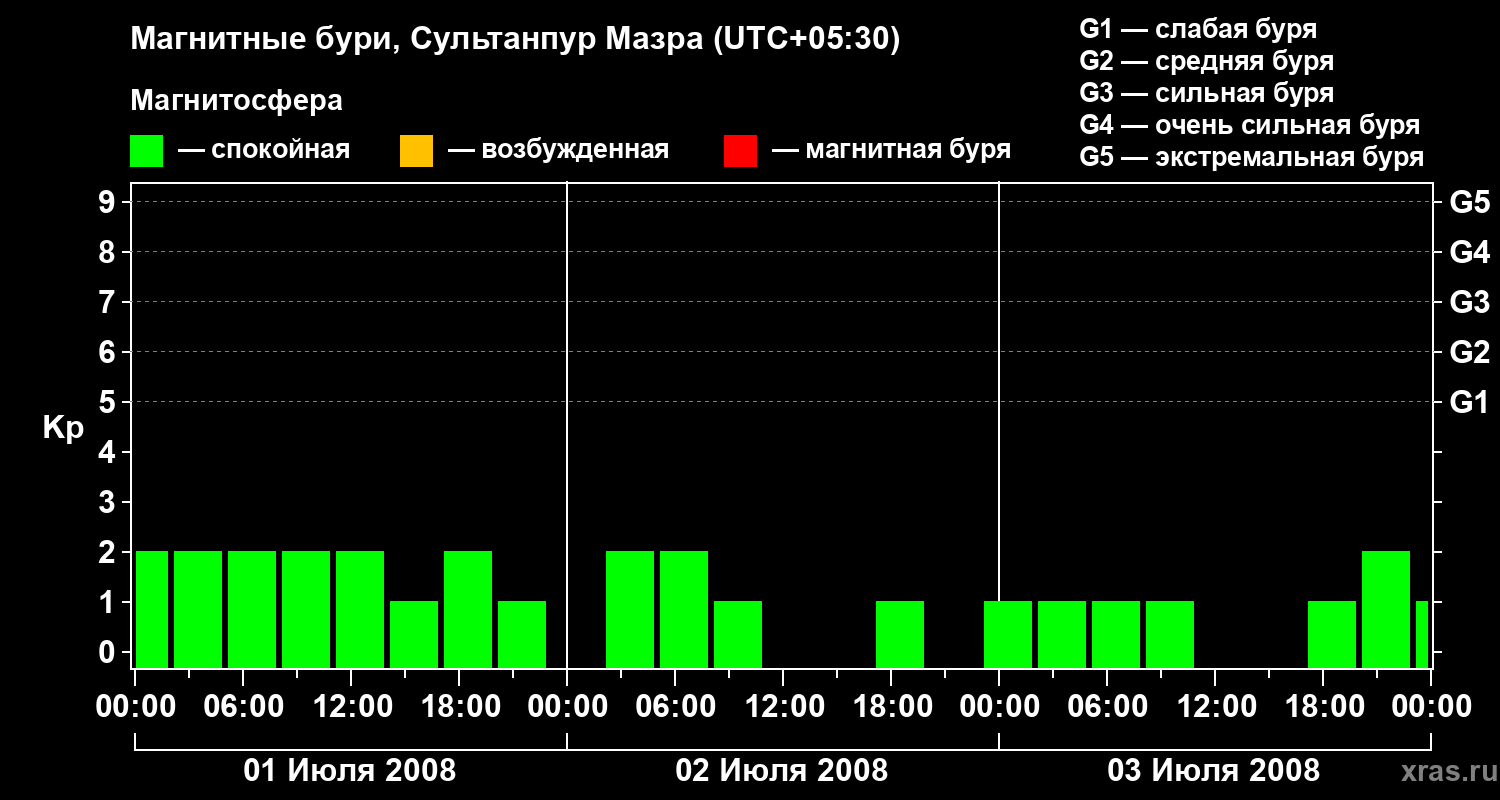 Магнитные бури в Сультанпур Мазре — 3 июля 2008 года