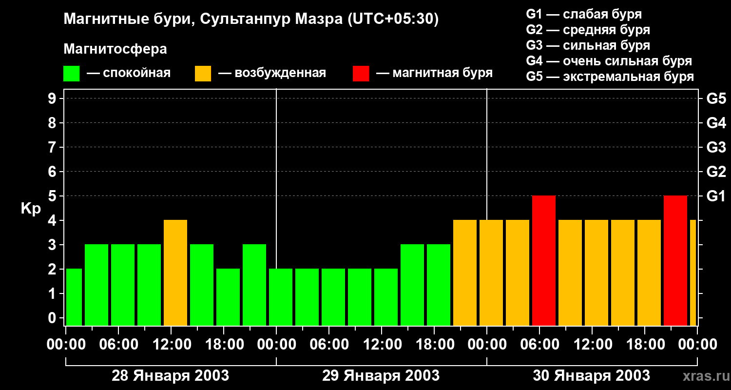 Магнитные бури в Сультанпур Мазре — 30 января 2003 года