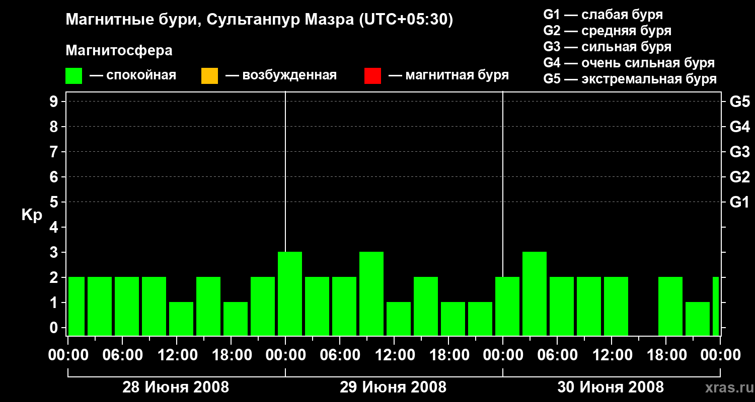 Магнитные бури в Сультанпур Мазре 30 июня 2008 года