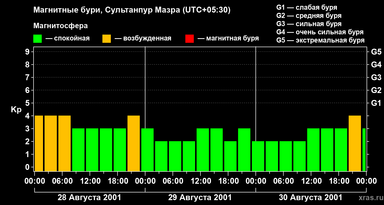 Магнитные бури в Сультанпур Мазре 30 августа 2001 года