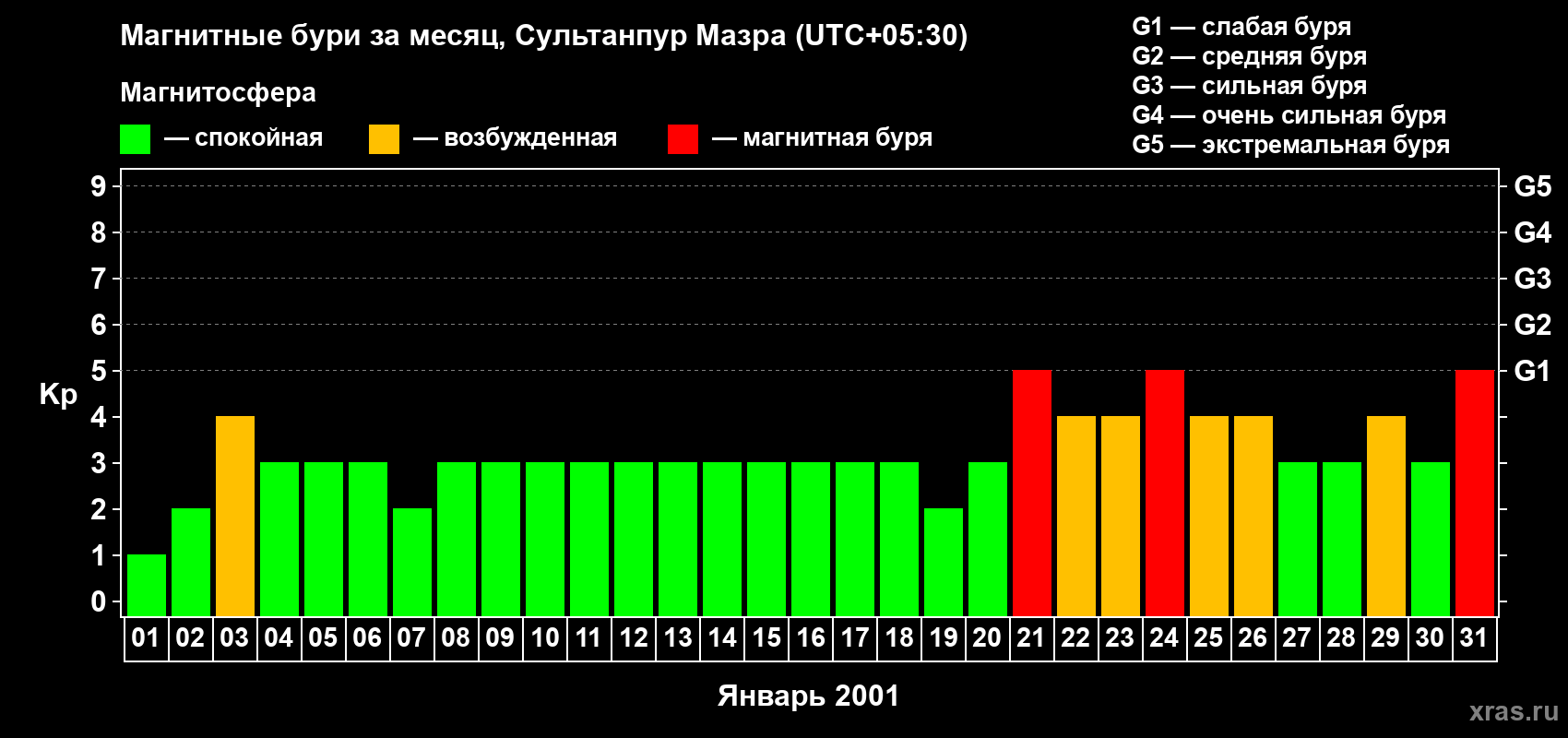Магнитные бури в Сультанпур Мазре 31 января 2001 года